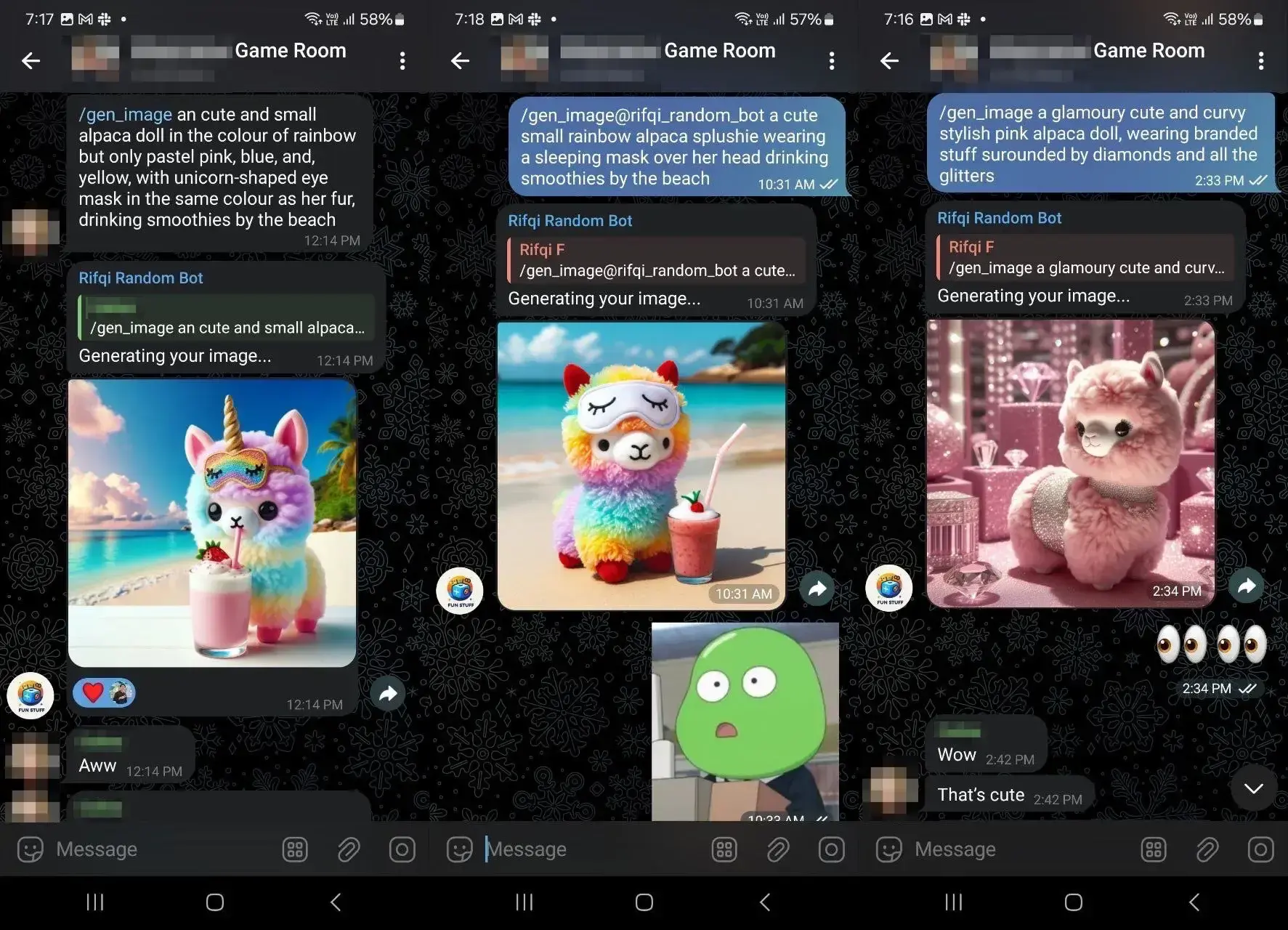As I developed the bot, I wanted to try integrating it with other services. For example, I used the OpenAI API to generate an image using DALL-E 3 model upon user request. I also added a bot answer feature to try answering the questions it previously asked.