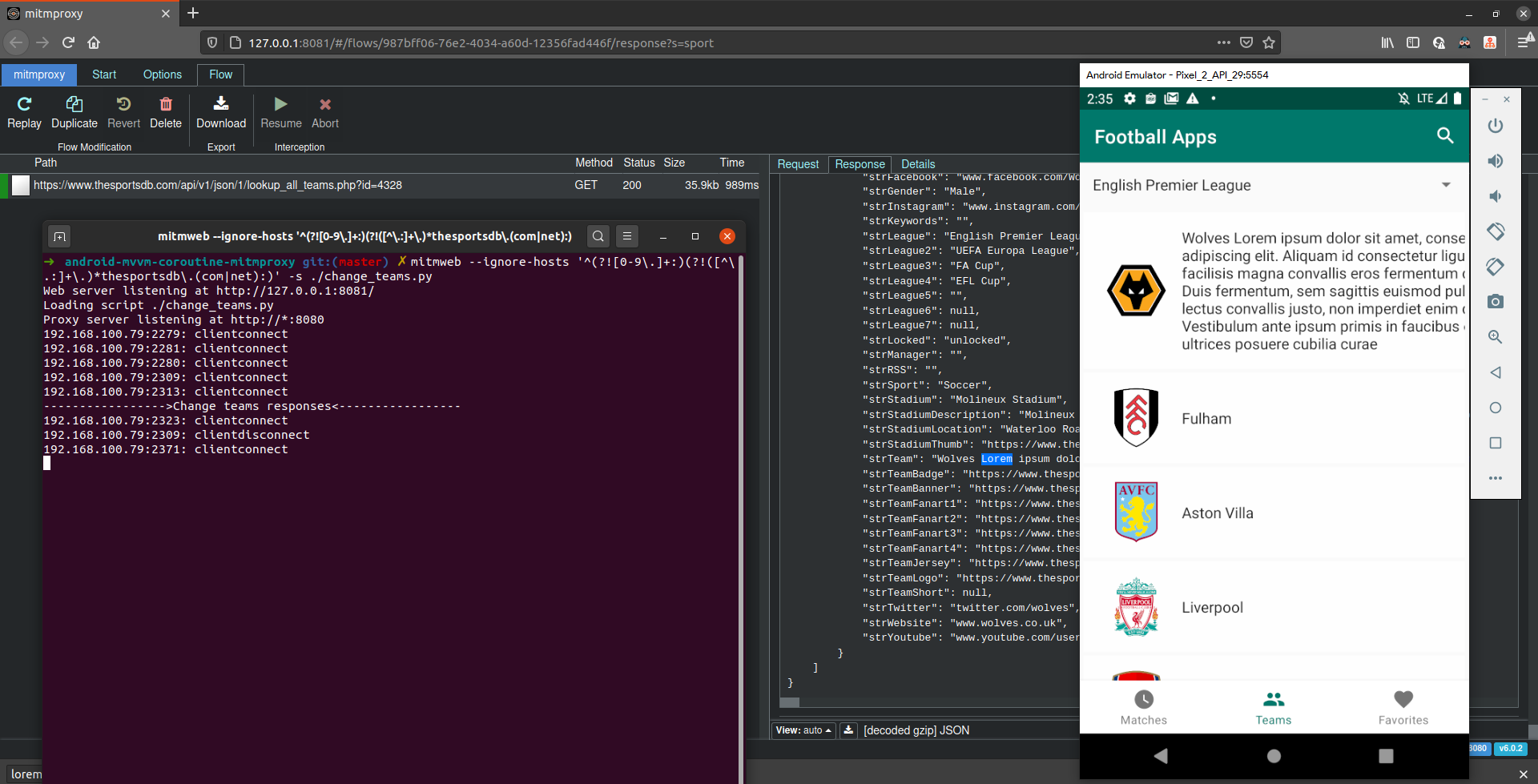 I think it's better to have a scenario as to when I need to use mitmproxy addons. I will be using my android-mvvm-coroutine app as an example. Say that I want to check a Recyclerview item on the teams page below. What happened if one of the items has a really long team name? How would it be displayed?